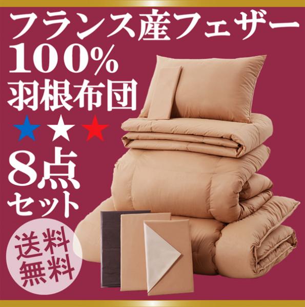 【送料無料】届いたらすぐに使える8点セット!フランス産フェザー100%羽毛布団(シングル)【 10P26Oct09 】価格: 10,395円レビュー評価: 0.0 レビュー数:0 ▼ご注意ください▼※こちらの商品は、代金引換はご利用いただけません。 代引をご選択時は銀行振込に変更させて頂きます。※銀行振込・郵便振替・コンビニ払いをご利用の場合は、 入金確認翌日以降の発送となります。※こちらの商品は、ご注文後の交換・返品はお受けできません。大好評! オールシーズン使える、ふわふわの 羽根布団8点セット!必要なものが、すべて揃っていて、届いたその日からスグに使えます!「フランス産フェザー100%羽根布団8点セット」のこだわりポイント!■ポイント1フランス産フェザーを、たっぷり、贅沢に100%使用!保温性に優れたフランス産フェザーは、ふんわりあったか。フランスとスペインの |